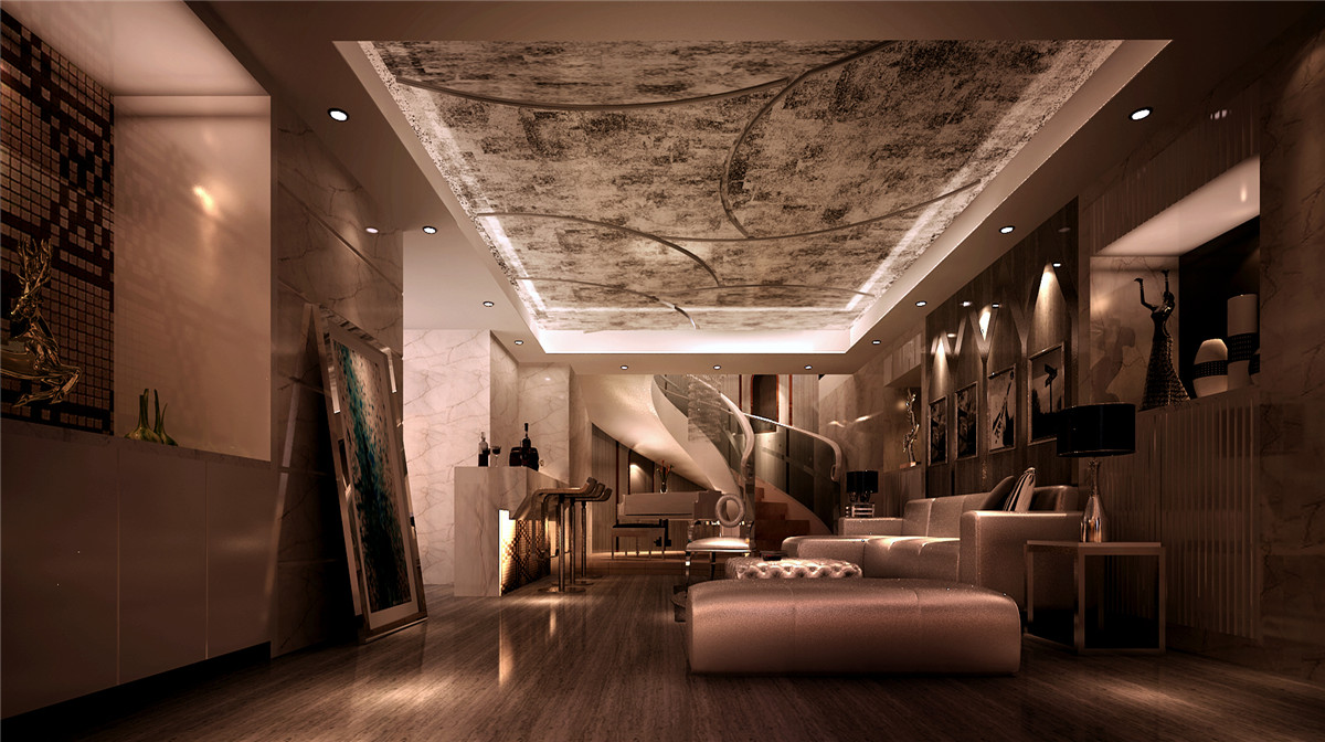 整個(gè)公共空間的處理重點(diǎn)就是在既保證客廳有足夠大的視覺擴(kuò)散性外又要保證在二樓的走廊部分使用上不受影響,所以采用圓形的客廳、圓形的樓梯間使其充分融合,最終通過(guò)圓形的張力保證了客廳空間感,也使其形成了弧形的走廊,從而也保證了使用的正常。