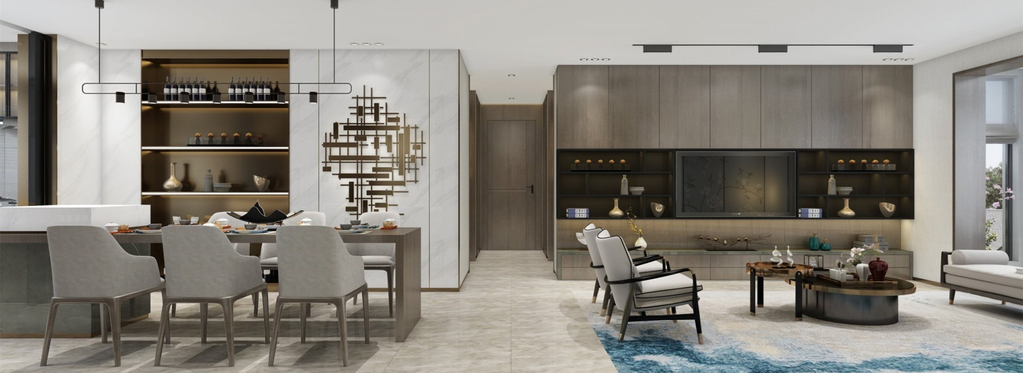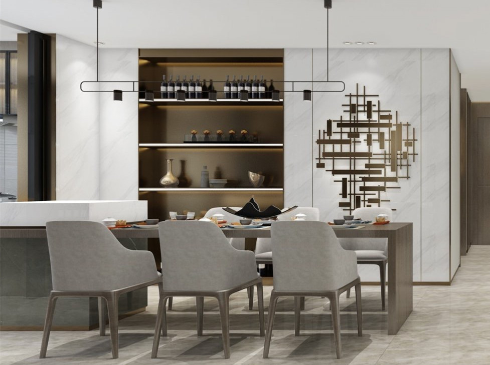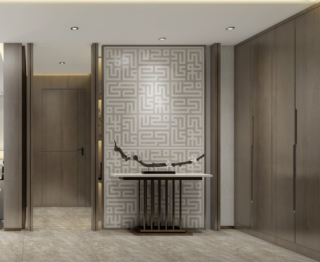 本案采用新中式輕奢設計手法來呈現,對原始戶型進行了局部的調整以來更加優化功能分區。整體色彩采用中性咖灰色系。材質采用復合石材及不免硬包、木飾面、天然石材、不銹鋼、乳膠漆等為主要材料。廚房利用隱藏式移門來滿足日常生活的各種場景。再設計和燈光以及質感為中心理念,圍繞宜居,舒適的生活環境為主導思想,從而呈現出業主滿意并且具備觀賞性及品位的居住空間