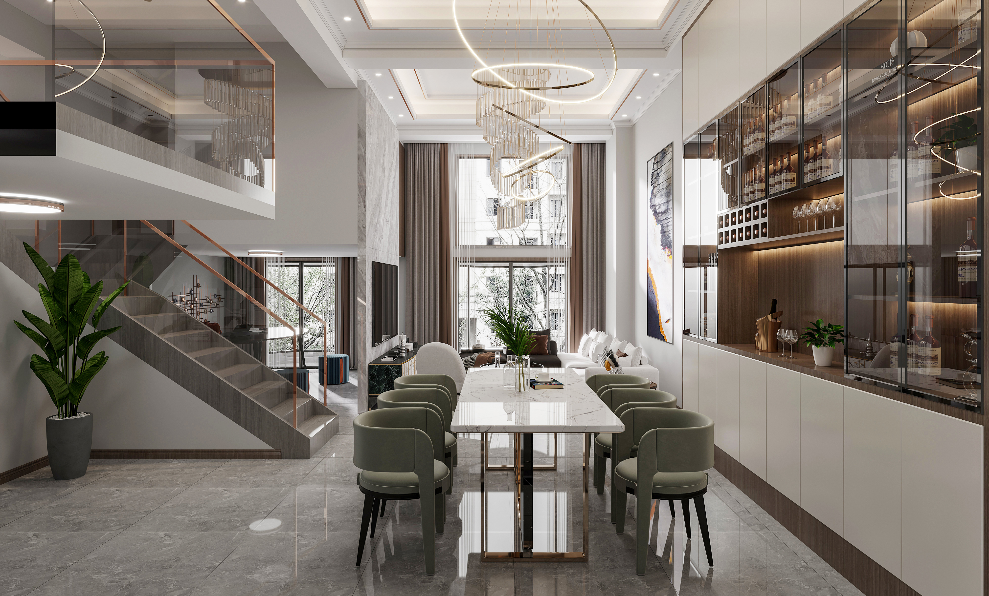 業主對設計和施工方面有一定的要求,本案設計經過和業主反復溝通,設計主題定位為:簡潔;大氣;精致;穩重,風格方面定位為輕奢風格,輕奢金屬線條的元素,同時又吸取了具有現代感強的材質,既不過分張揚,而又恰到好處地把雍容典雅之氣滲透到每個角落,既突出房子本身的自然優勢又適當彰顯業主的個人品味。