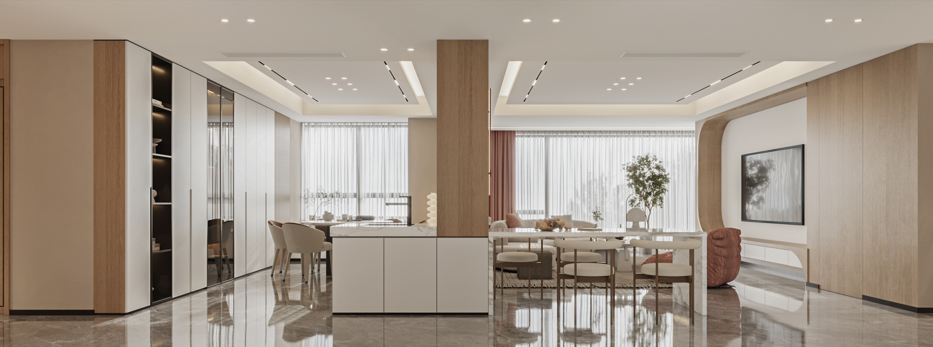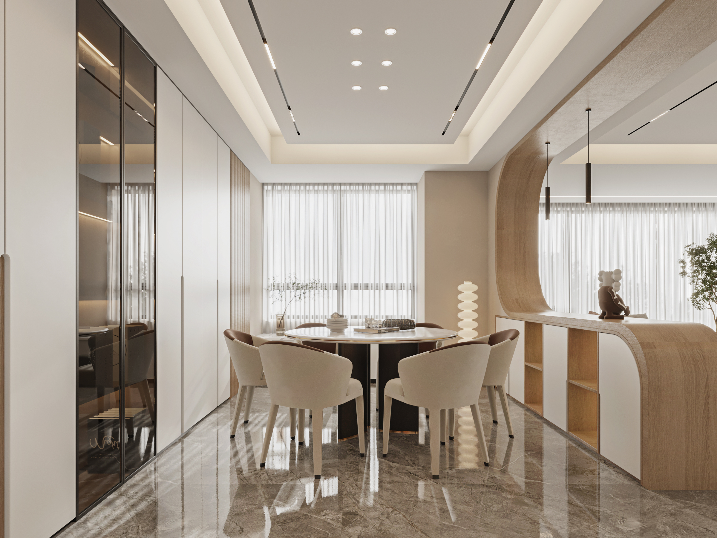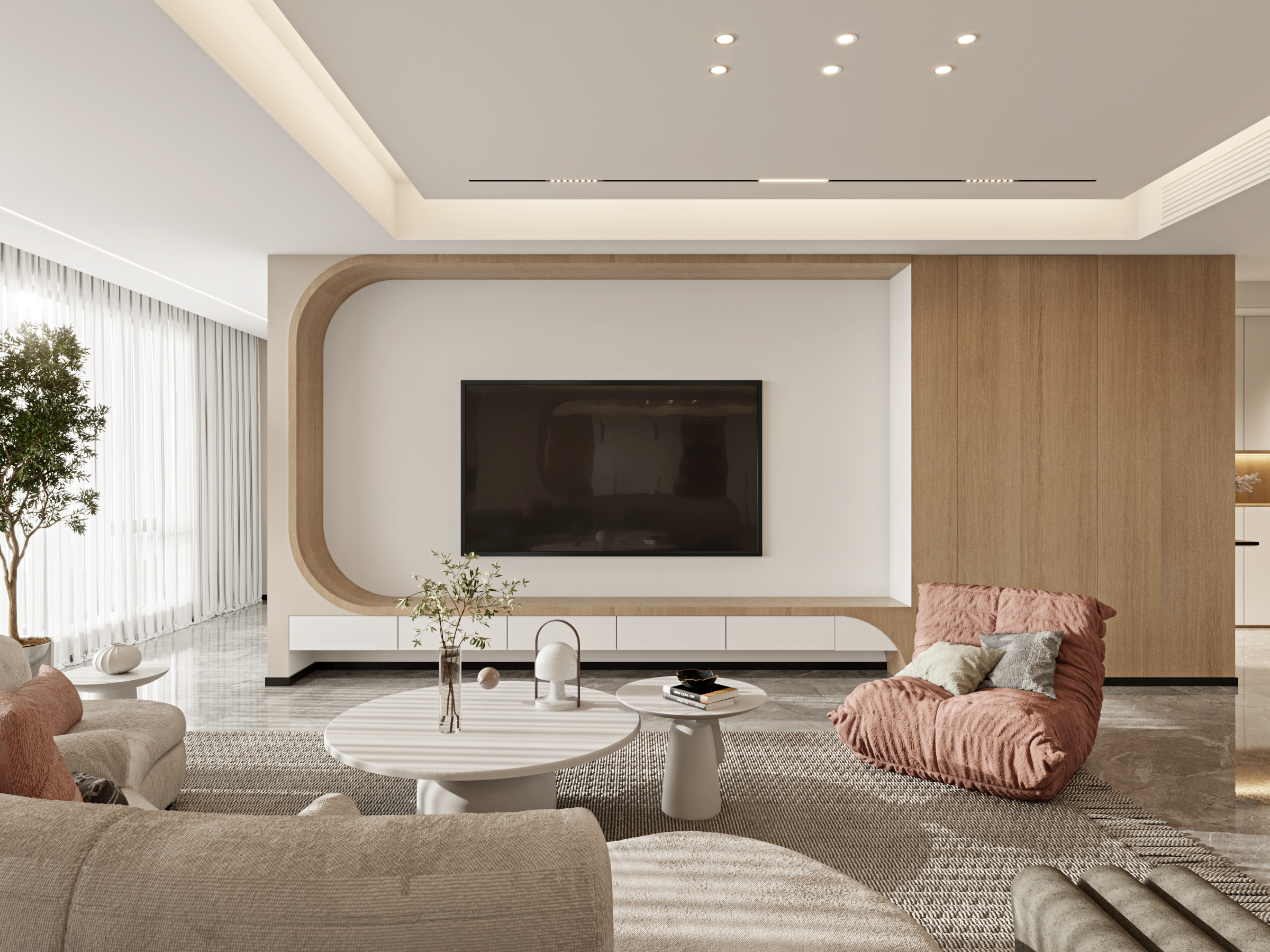 沒有繁瑣及浮夸的表面裝飾處理,有的只是生活中最常運用最為樸素的語言,以及那些精挑細選、用來點綴多彩生活的家具與擺設,簡單的局部弧線點綴讓整個家增添一份設計感,一副清爽且富有質感的構圖便形成了。