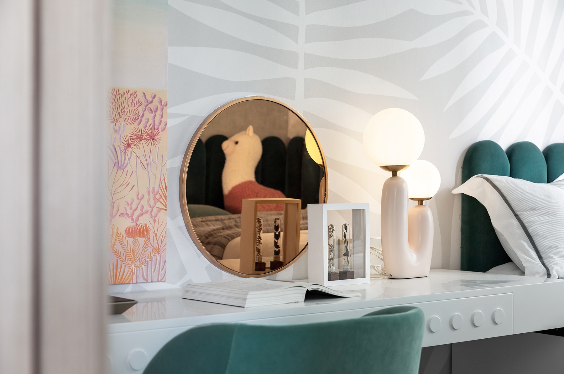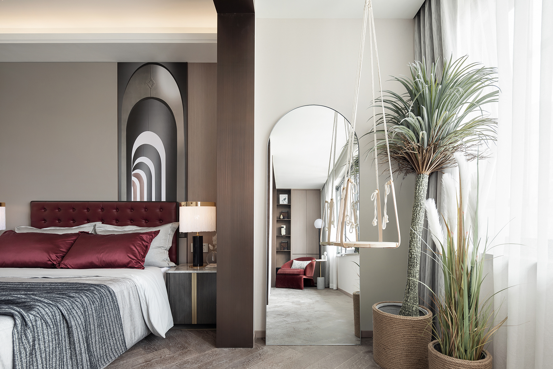 本案專為都市新女性度身設(shè)計。消費(fèi)對象的定位是出生于八十年代的、生活在三環(huán)內(nèi)的都市時尚女性。她年輕,驕傲而矜持,自我欣賞并鐘愛舞臺,追自由前衛(wèi)的個性同時又享受著生活。鏡面的影像令空間伸延,粉紫色軟織物系統(tǒng)配飾以神秘、溫婉的風(fēng)格表明女主人的身份。