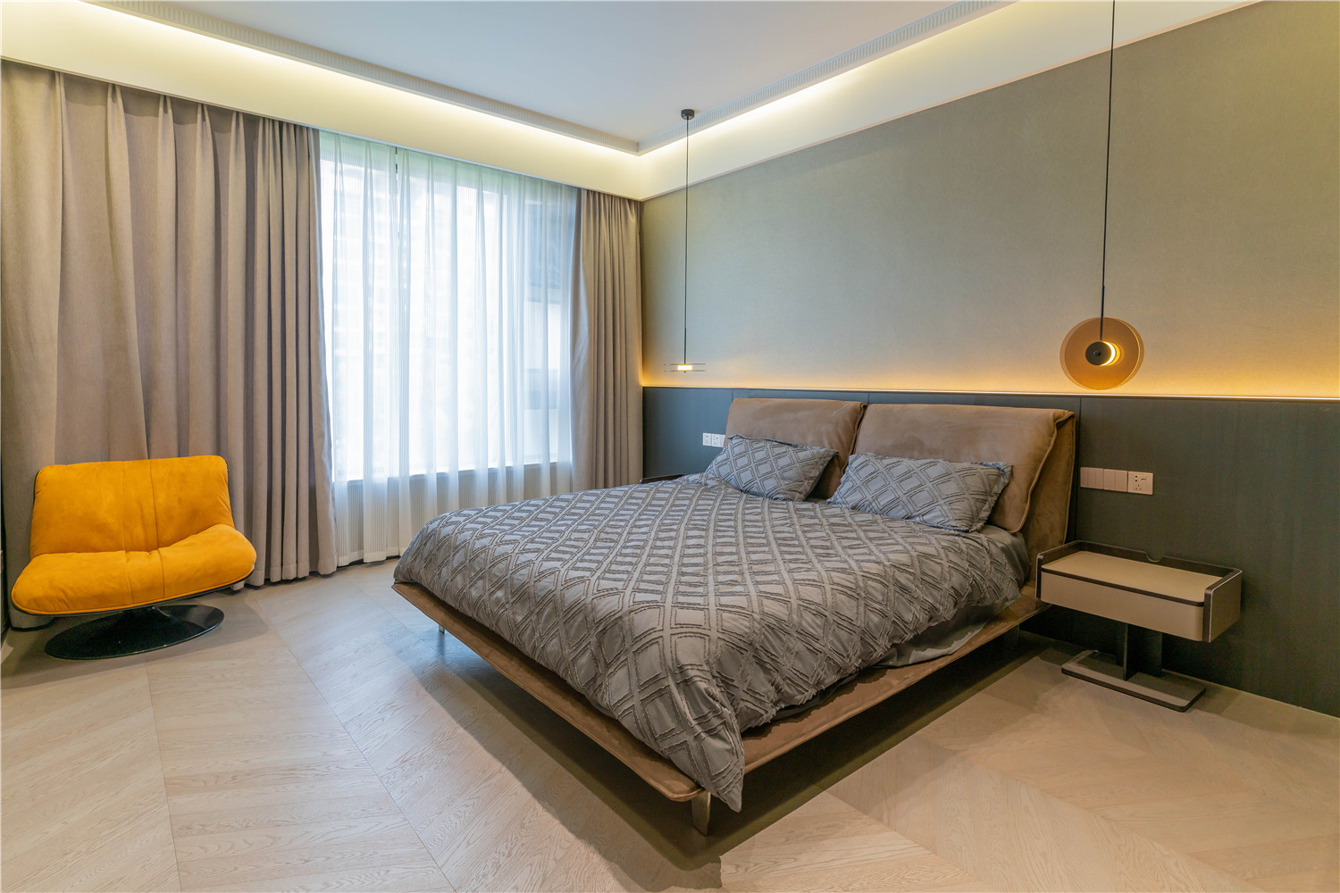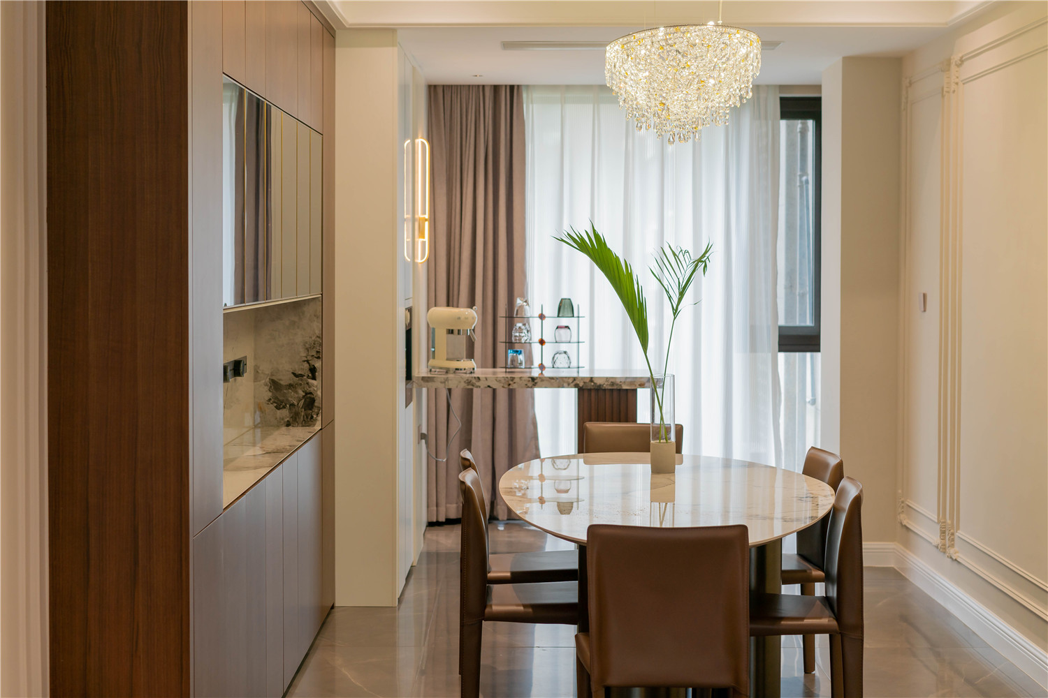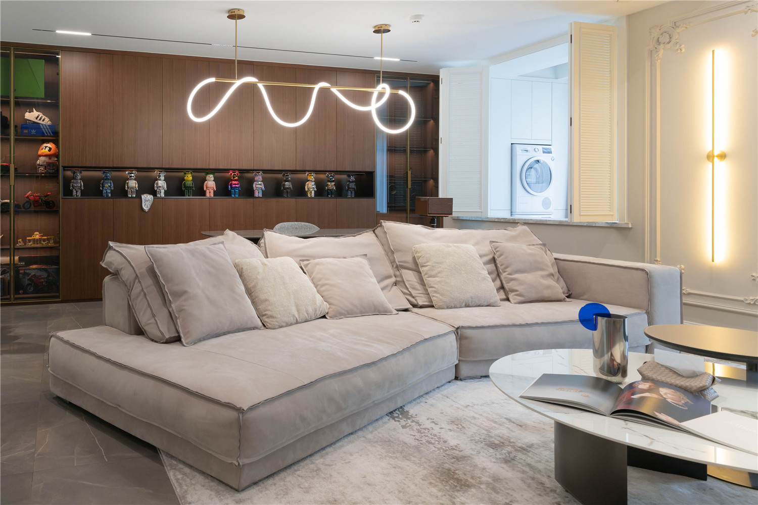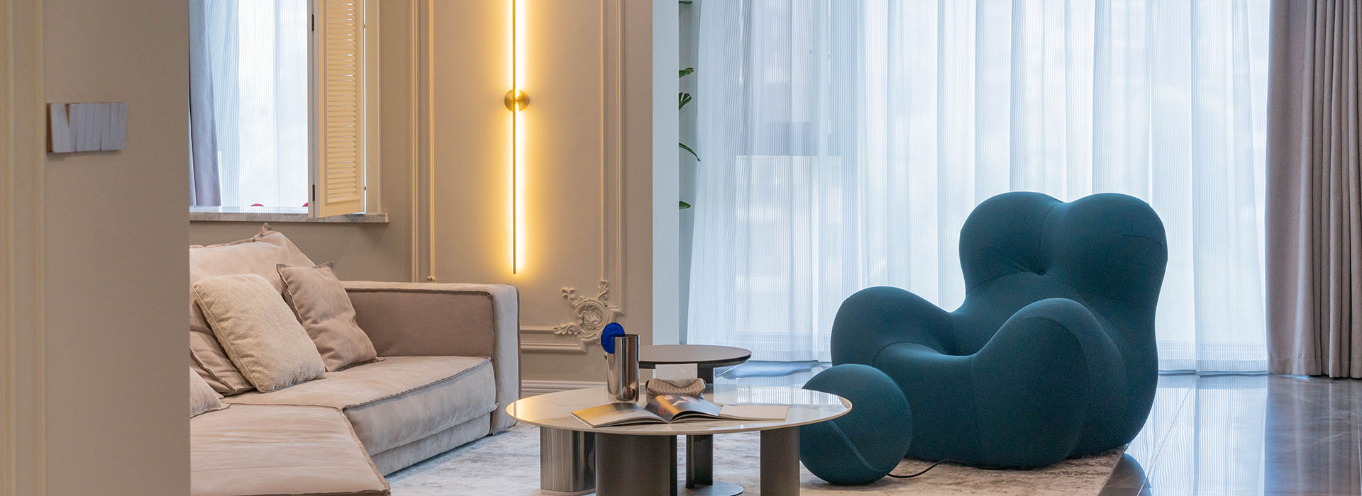 女主人是個熱愛生活的人,喜歡法式的浪漫與優雅,享受一點點將家填滿的過程,家中每一個小擺件都是她慢慢淘回來的。而男主人成熟穩重,喜歡簡約的現代基調。