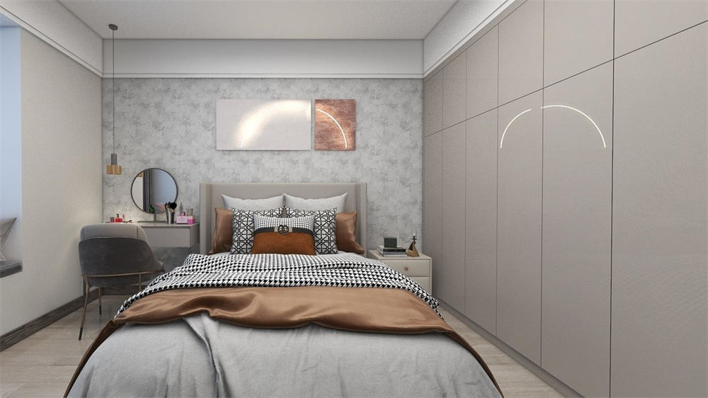 設計師以現代輕奢風為基礎,通過調整空間比例,讓每個空間都得到了合理的使用。沒有任何繁復的構造與裝飾,借用材料本身的紋理與質感,來充分體現業主的品質生活。