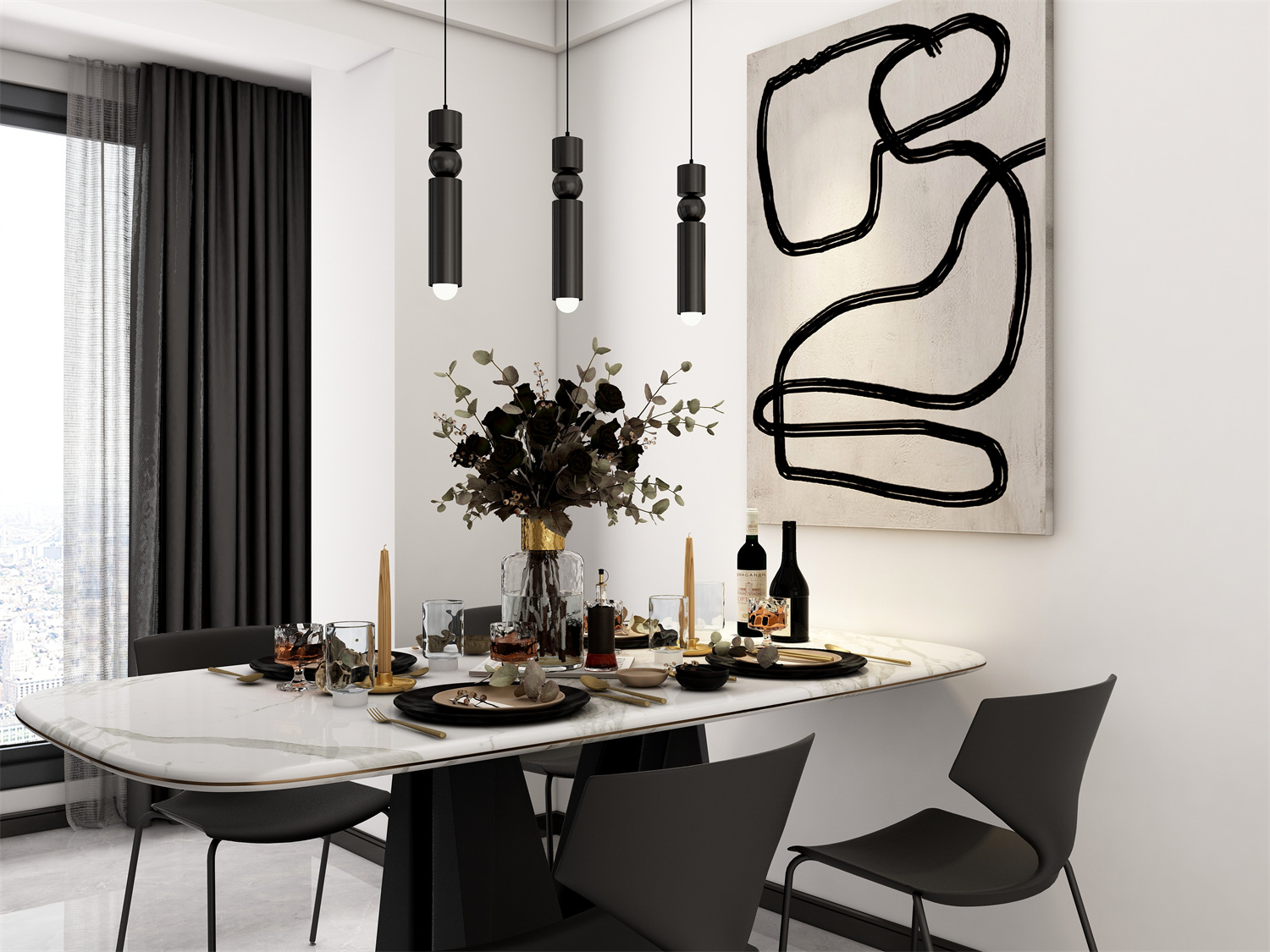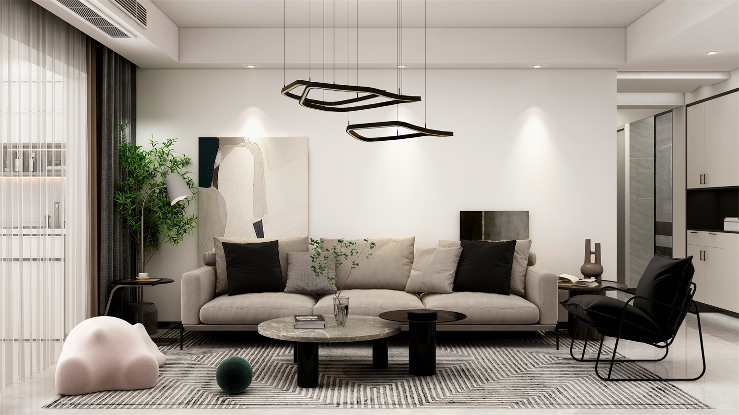 理性質感的黑白灰仿佛鋼琴的琴鍵,奏響時尚慢生活。整體黑白灰的空間設計,簡約之中承載著理性的情感。