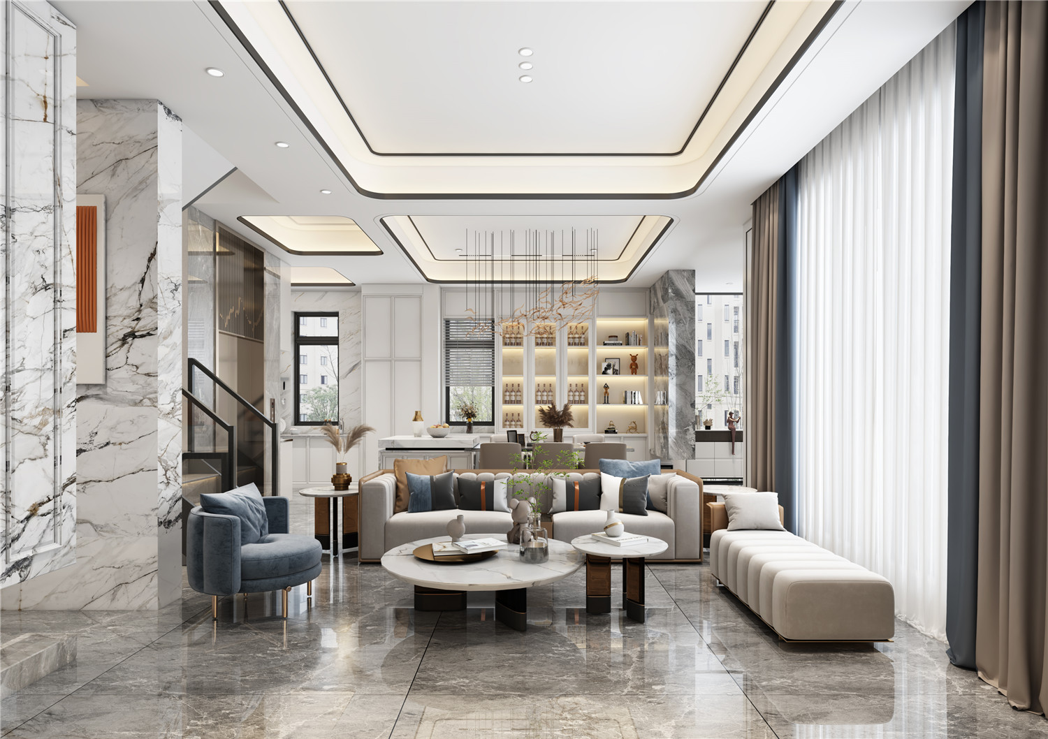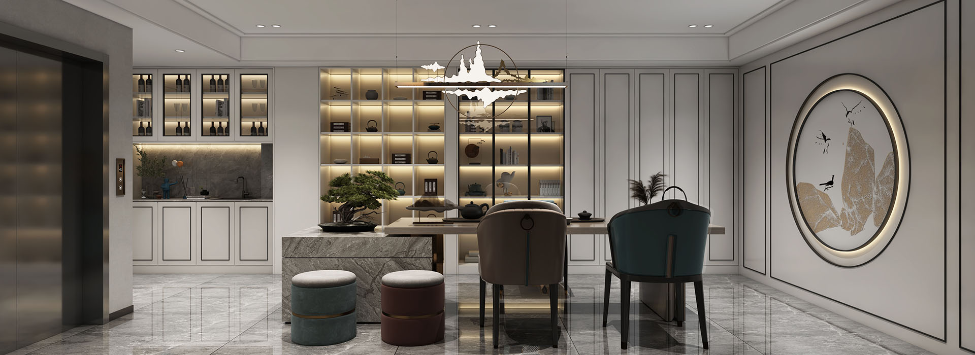 有質感、有品位的生活,一定要嘗試一下現代風。大面積石材的運用,奠定了低調不失尊貴的基調。利用線條進行空間的分割與裝飾,突顯了理性典雅的氣質。元素中加入一些新中式風格,讓空間顯得有韻味。