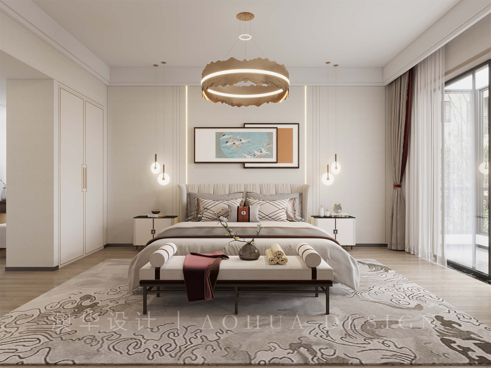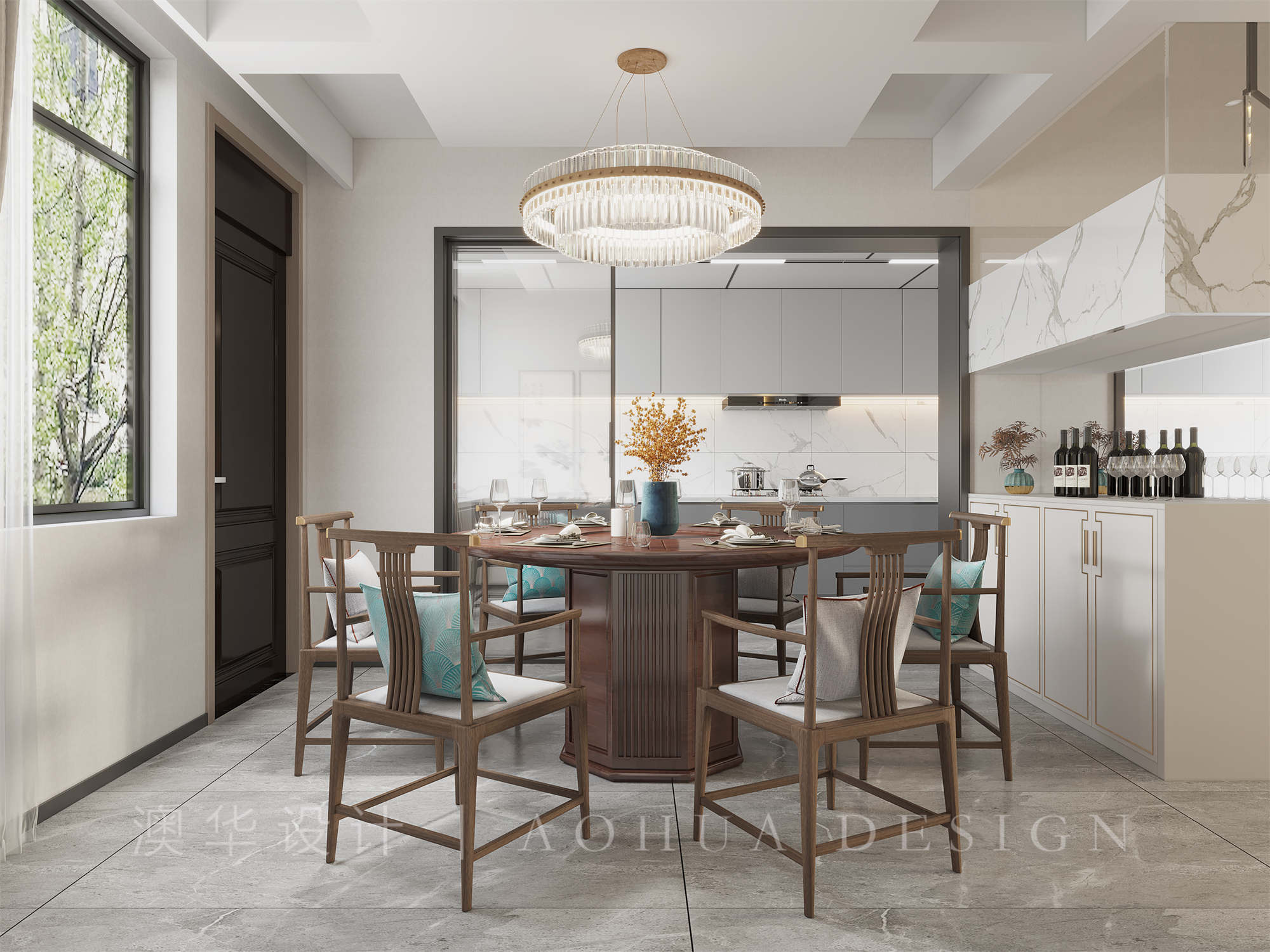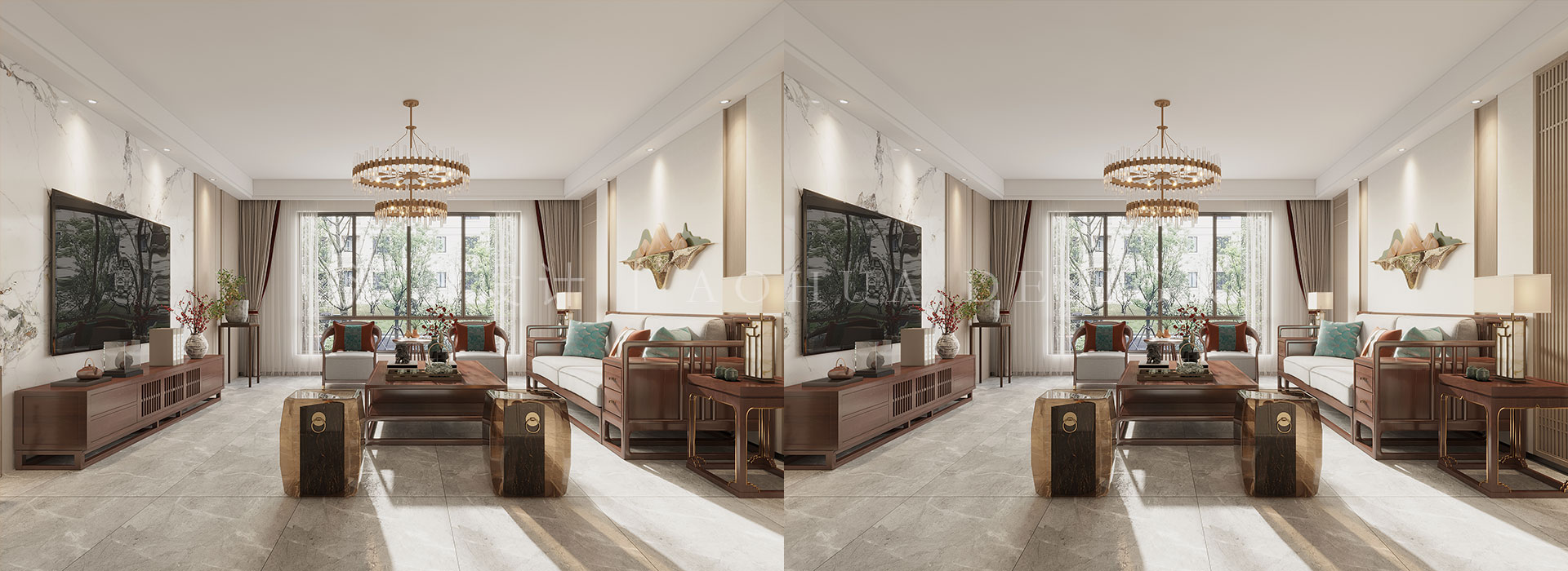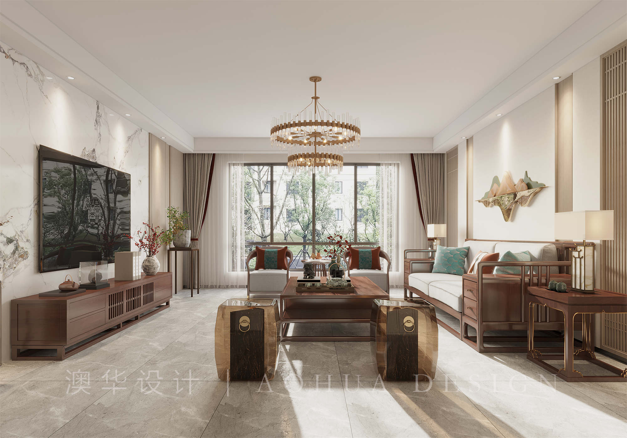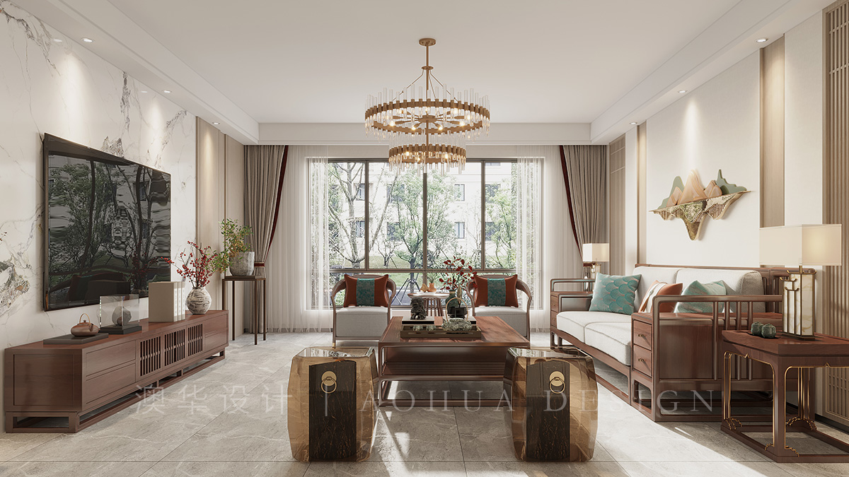 本案以于淡香古韻中點染出一幅清逸素雅的溫婉畫境,以當代語言演繹傳統東方美學,邂逅碧波蕩漾的詩意棲居。