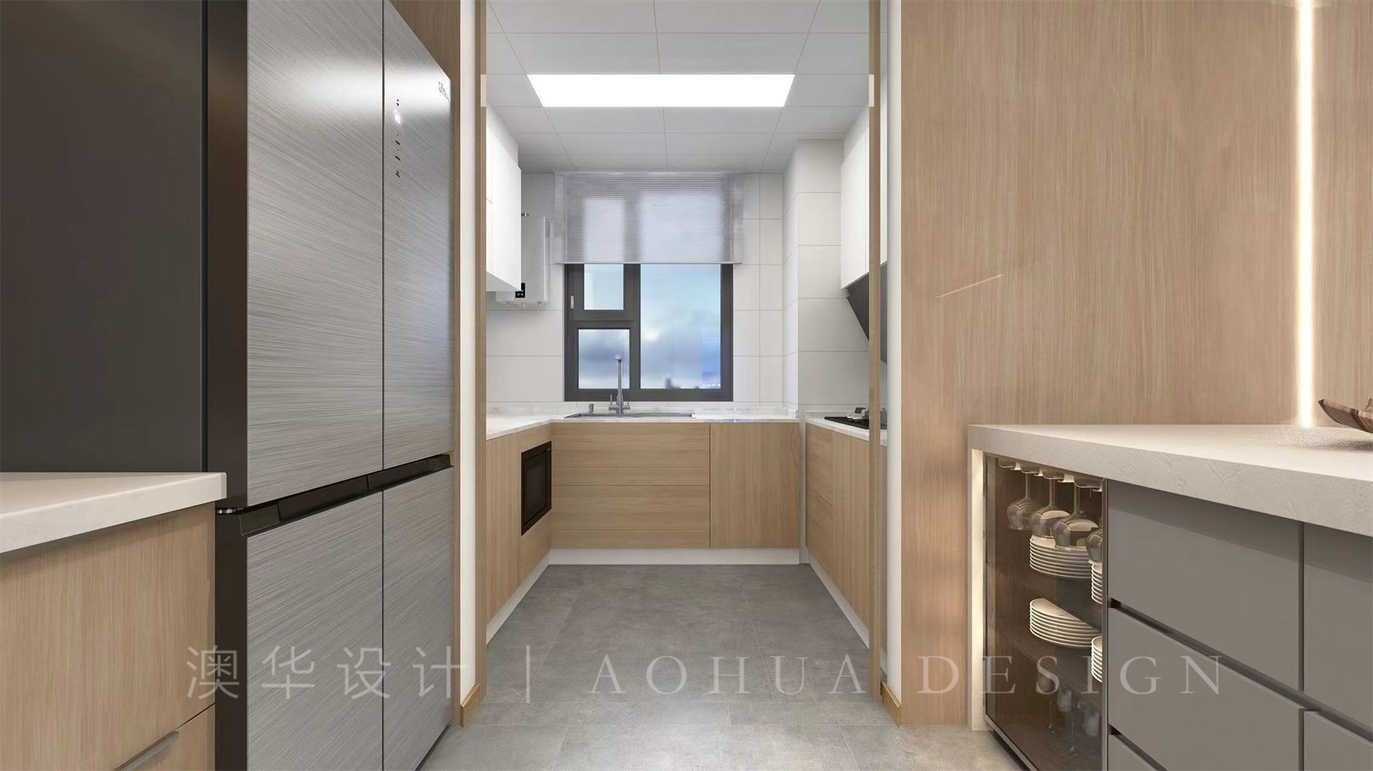 • 不用花哨的裝飾,追求簡單實用;u型櫥柜結構,根據主家實用習慣洗、切、備菜、烹飪,區域分離,動靜流暢,在廚房外增加了一組西廚櫥柜,可謂人間煙火地,滿足所有燒飯需求。