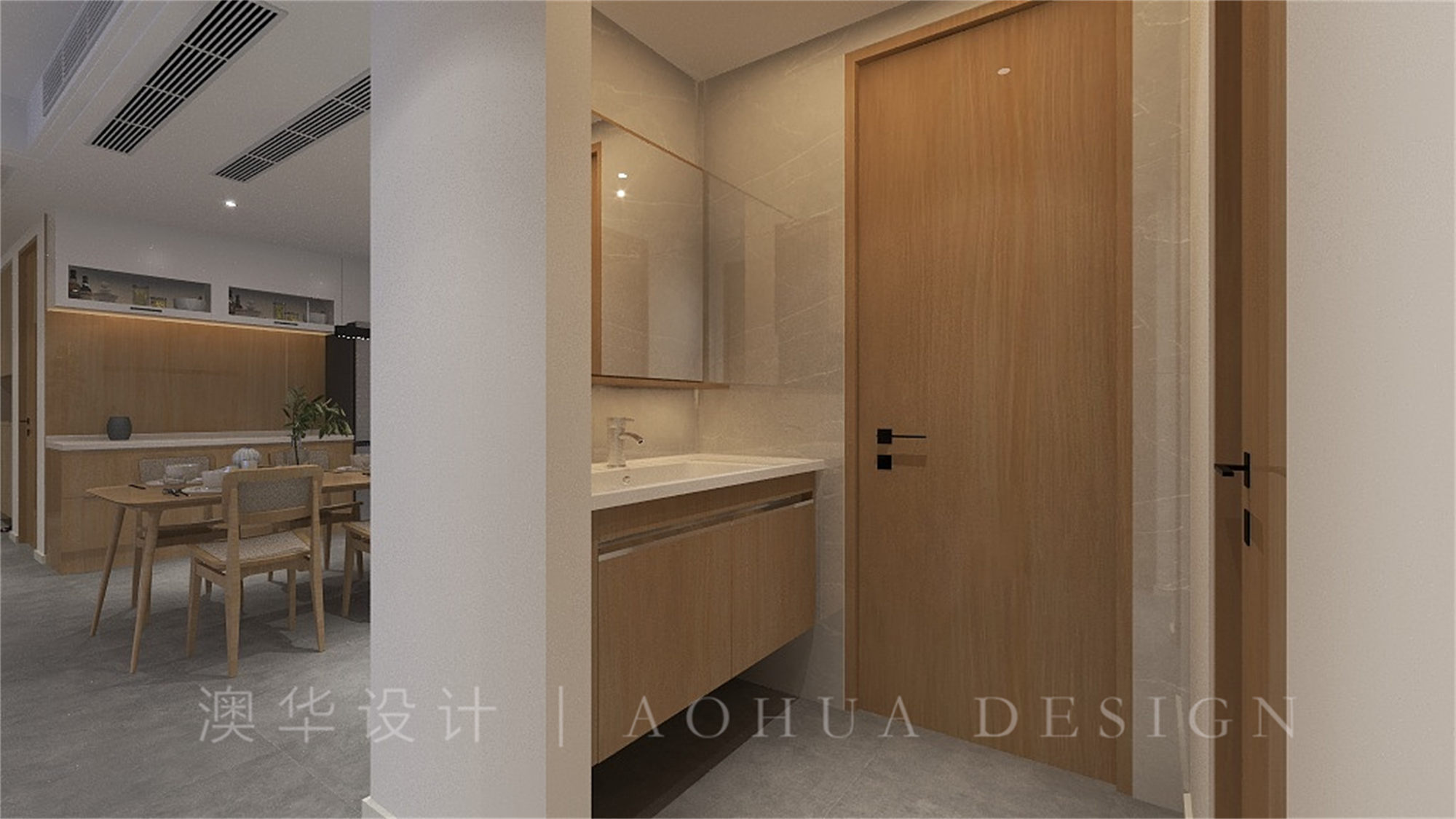 • 干濕分區衛生間滿足多口之家的實用需求,風格上面也沿用了原木風。
