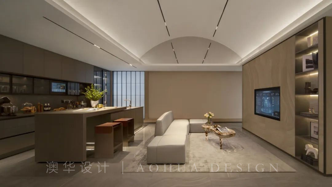 • 連通島臺的客廳,延伸更多元的家庭場景,除了基礎功能的滿足之外,客廳更重要的,是空間的可變性和包容性,可移動家具、墻體逐漸出現,不管是“劉畊宏女孩”的健身時刻,還是三五好友的麻將局,亦或是足球之夜、美食派對,隨時可以騰出空間做好準備。