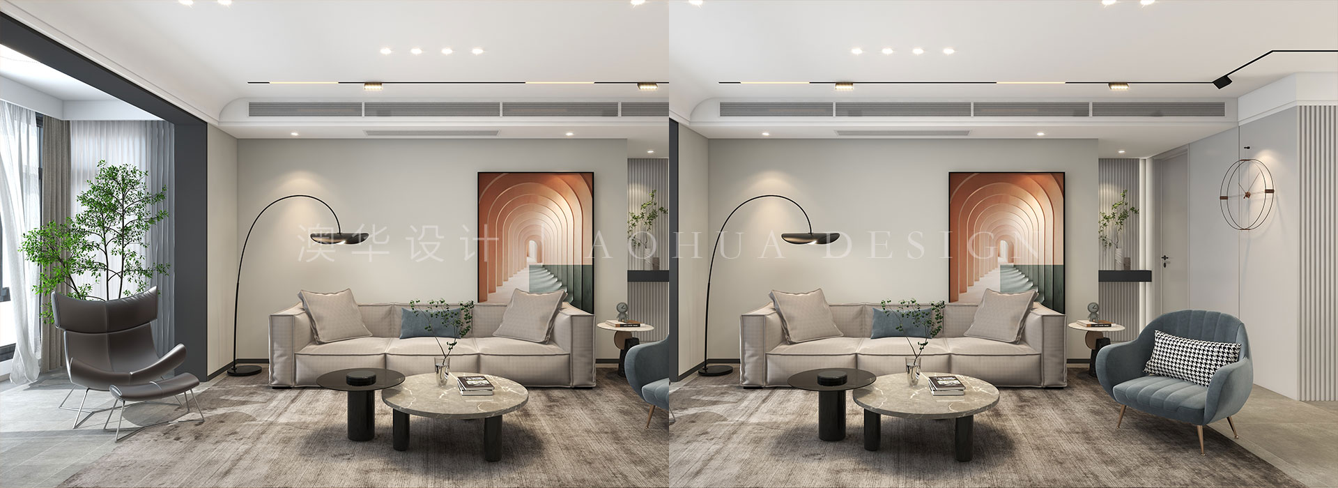 • 設計師將客廳與餐廳相連,形成開闊的整體,從陽臺到客廳再到餐廳,視野開闊