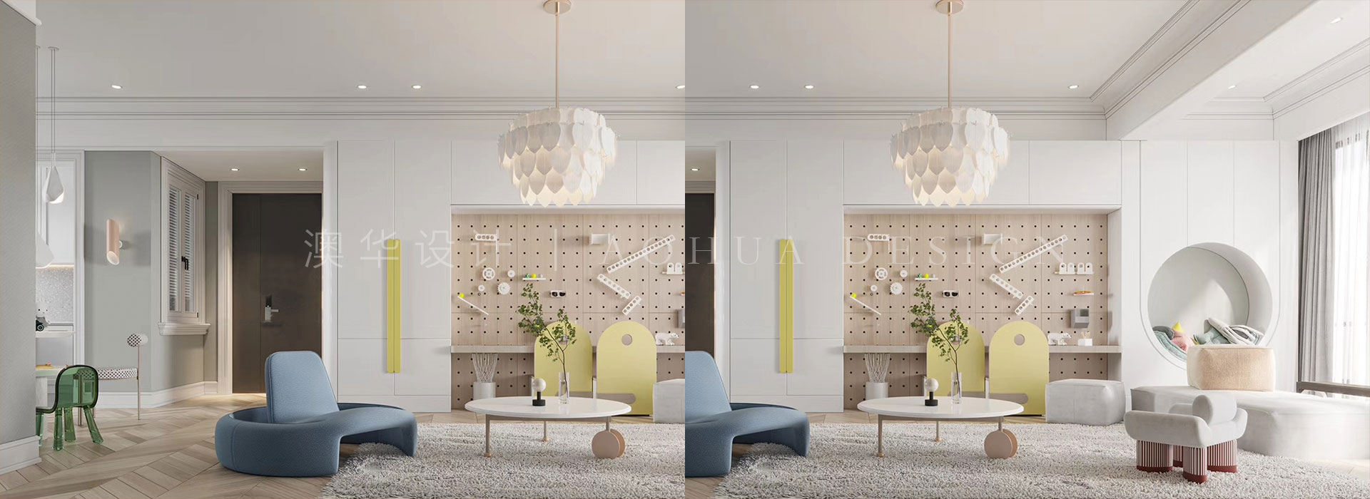 交互式空間在現在以及未來均會成為設計的主流,這不僅僅有助于空間視覺效果的最大化,同時能夠增加空間的趣味性,促進人與人之間的交流,讓居家環境變得更加健康輕松。千鳥格單人轉椅相對而言要素雅一點,透露著一點活潑的同時和整個空間相對協調