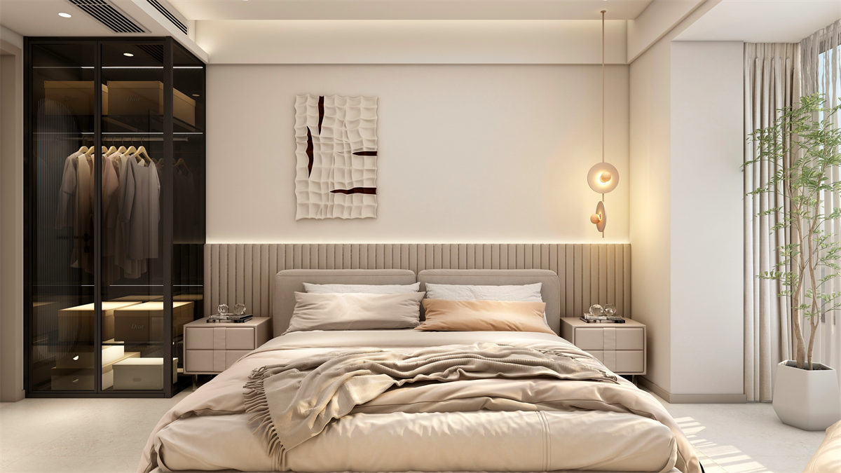 輕奢新法式風格演繹官廷法式的精致優雅,在線條上簡化。化繁為簡,通過細致的雕刻,栩栩如生的逼真造型,演繹時尚法式的清新韻味。選擇淡雅、低調的設計來打造現代式的輕奢感。主要突出對稱的布局方式,再結合幾何線條與淺色的空間色彩。打造出一個法式輕奢主義的空間格調。
