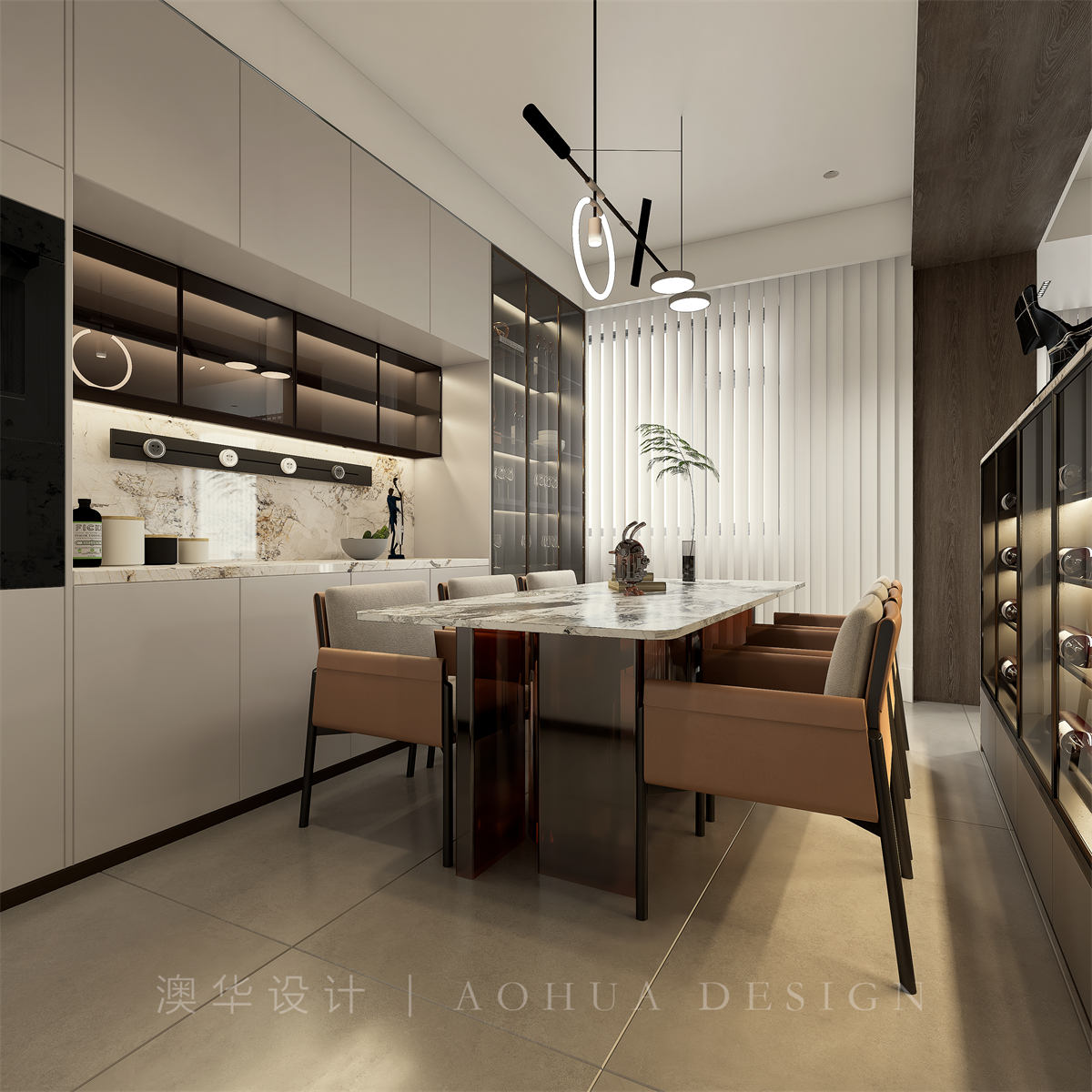 • 通過(guò)設(shè)計(jì),打通一個(gè)空間保證了客餐廳功能更加齊全,讓整個(gè)客餐廳通透大氣。