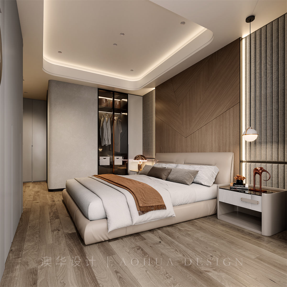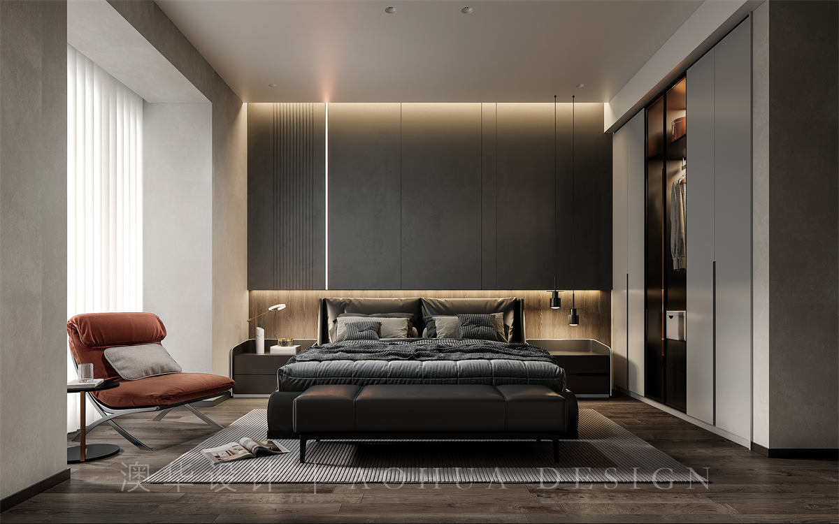 • 根據(jù)客戶的想法進(jìn)行深化設(shè)計(jì),按照客戶的喜好做了深色層次的設(shè)計(jì),整個(gè)臥室優(yōu)雅整潔。
