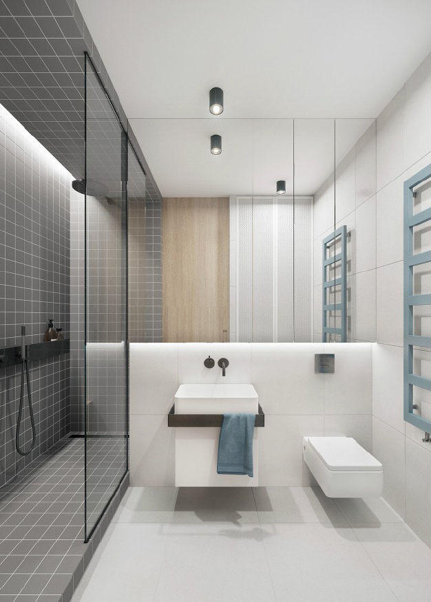 ? ? ? ?地面選擇啞光瓷磚,防滑性能更好,尤其家里有老人和小孩的需要注意。再用同色系瓷磚勾勒腰線,看起來簡約大氣。