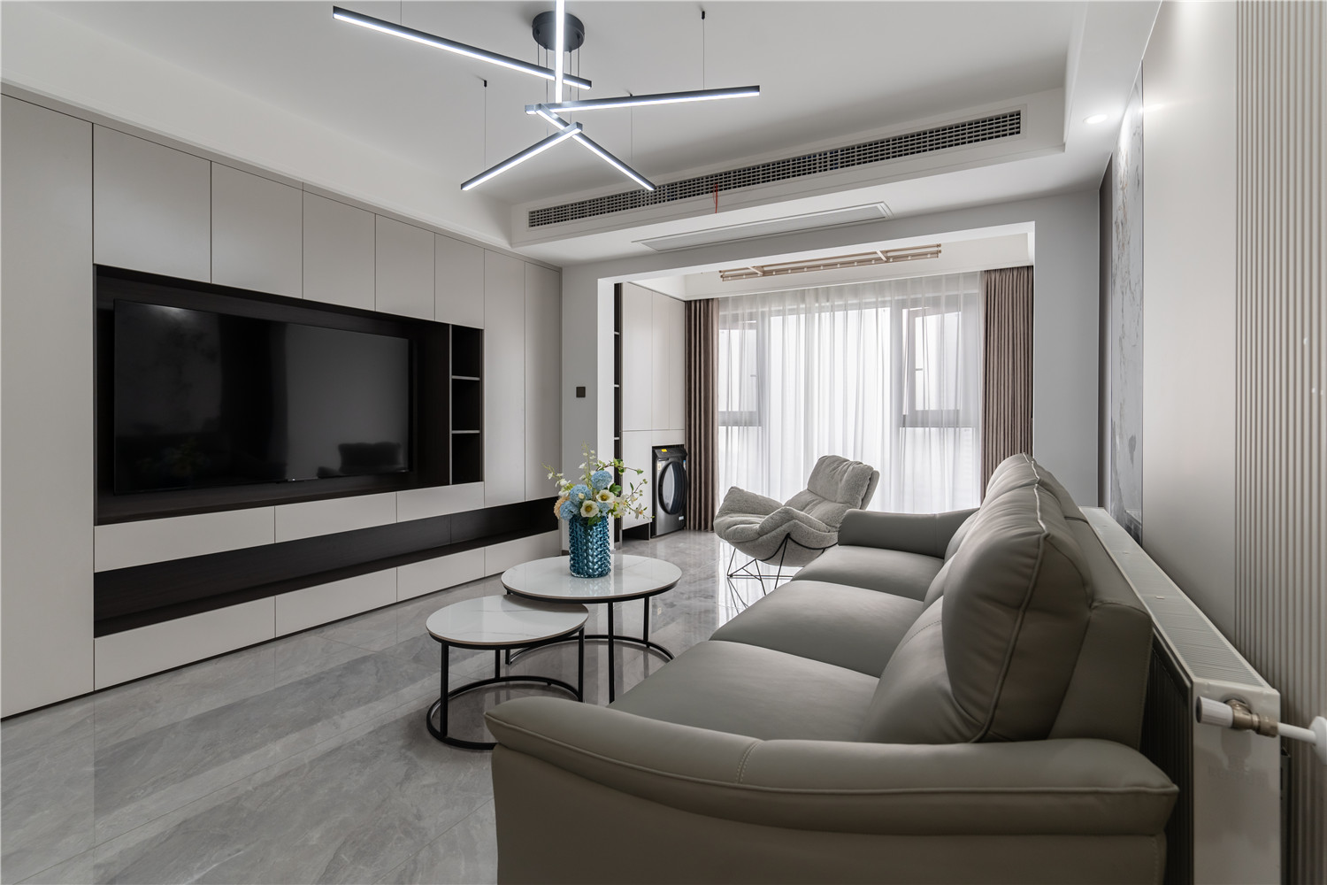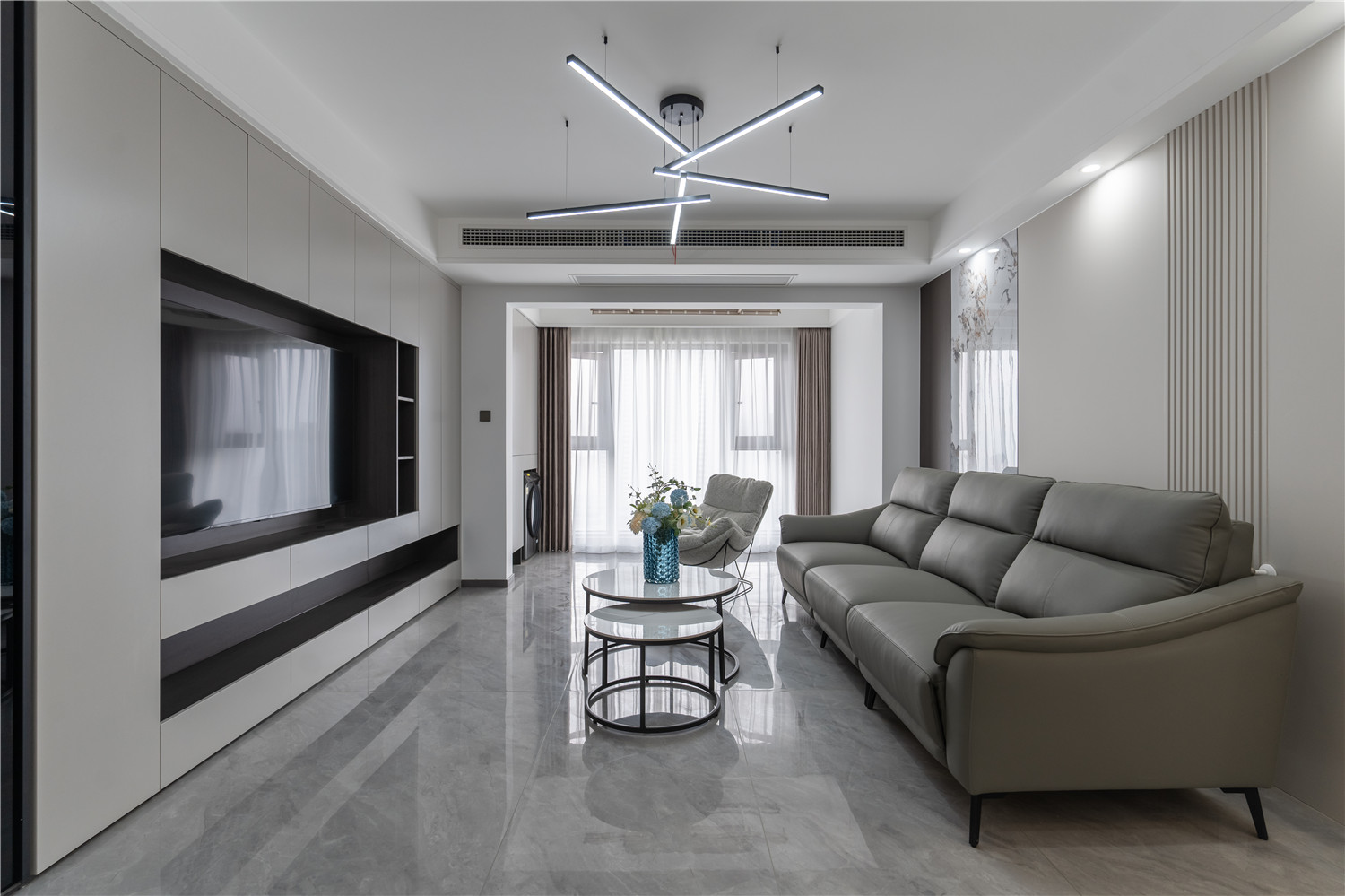 1 客廳與陽(yáng)臺(tái)聯(lián)通,整體更加通透敞亮,提升大氣視覺(jué)。