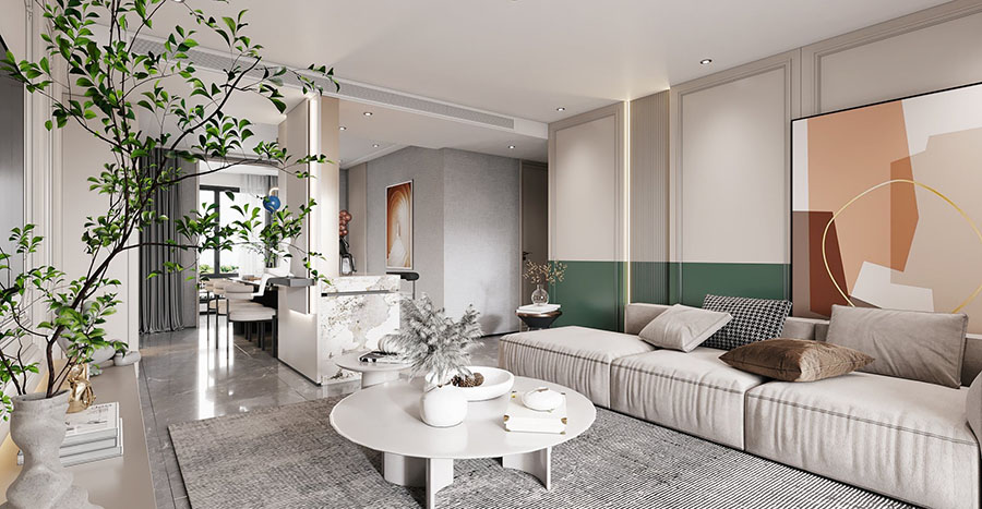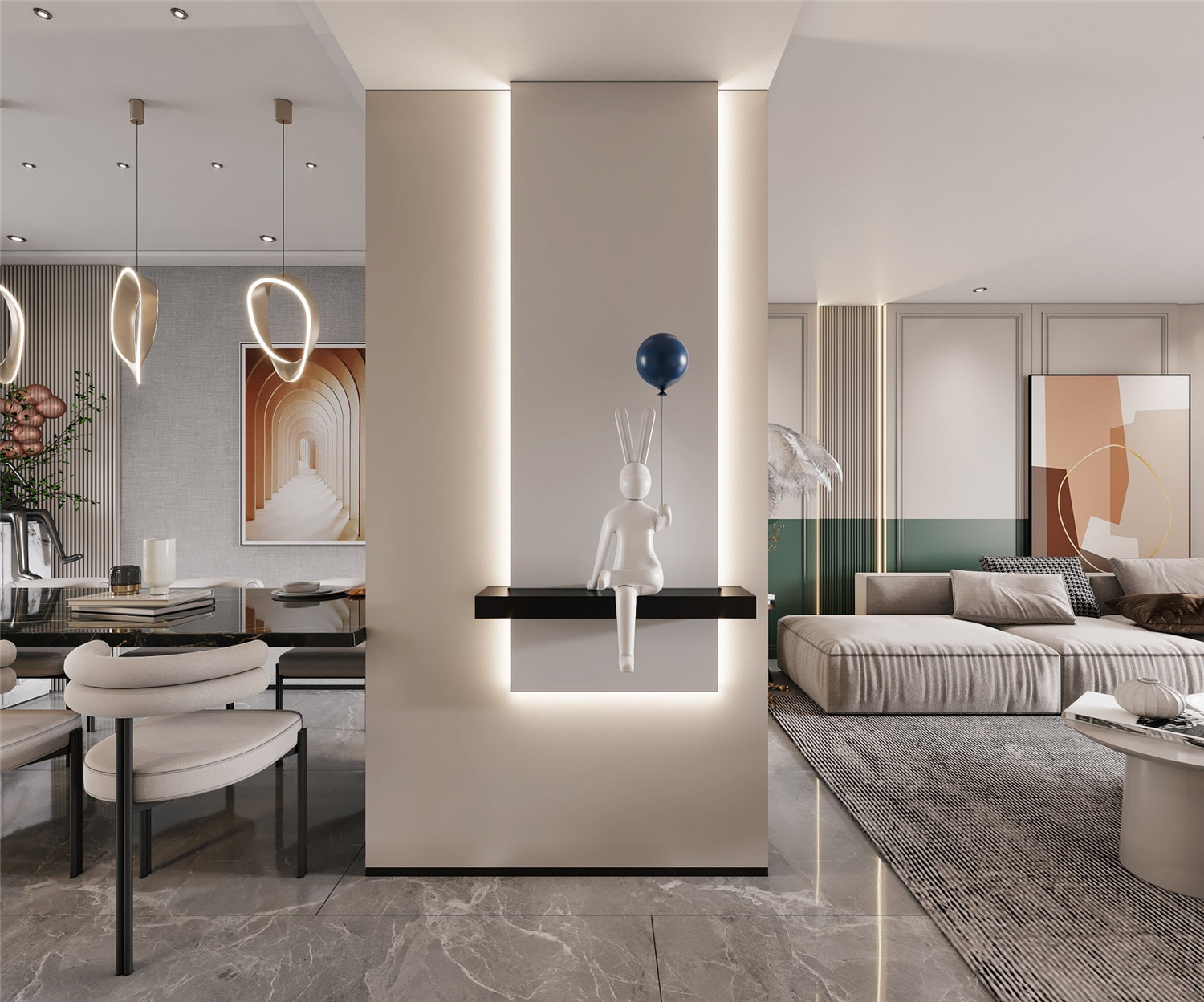 案例簡介:其實對于絕大多數(shù)人而言,家不需要花里胡哨的設(shè)計,只需要能夠給人一種踏實的歸屬感就足夠了,也因此本案例的設(shè)計師在與業(yè)主進(jìn)行溝通之后,舍棄了各種華麗的設(shè)計,借助最為常見的灰白配色營造一種溫馨舒適感,同時借助簡單的墻面設(shè)計,在不會顯得過于刻意的前提下裝飾點綴空間,強(qiáng)調(diào)一種簡約而又不簡單的高級潔凈美。