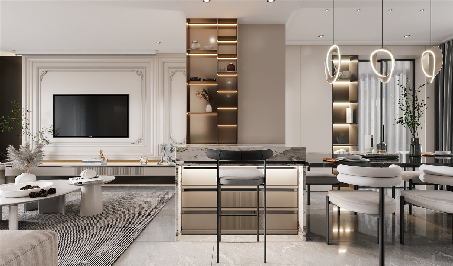 新華尚水灣這套137㎡的三居室住宅戶型規(guī)整且采光好,原有功能分區(qū)上的劣勢在于走廊過于狹長,容易給人以閉塞感。因此設(shè)計師充分利用戶型優(yōu)勢,借助雙陽臺設(shè)計引進(jìn)自然光,而走廊處則借用吊燈、墻壁等設(shè)計提升豐富感。為便利主人日常起居生活,設(shè)計師在主臥區(qū)域改造出貨一個迷你衛(wèi)浴空間,以提升生活的私密感。