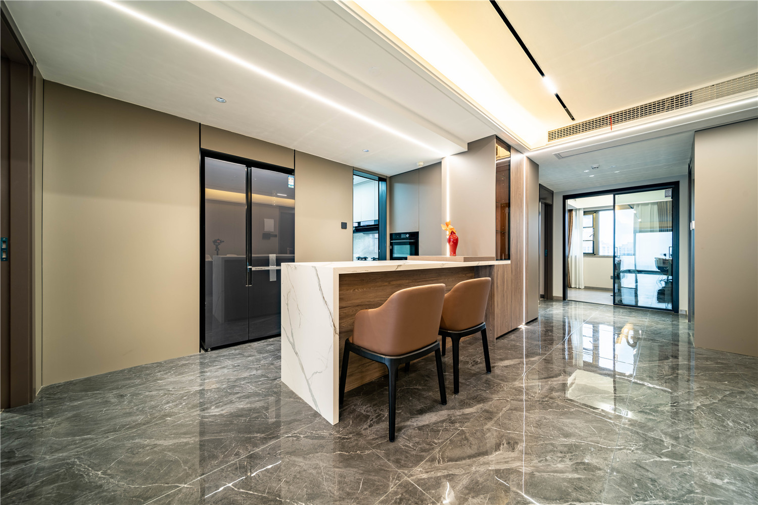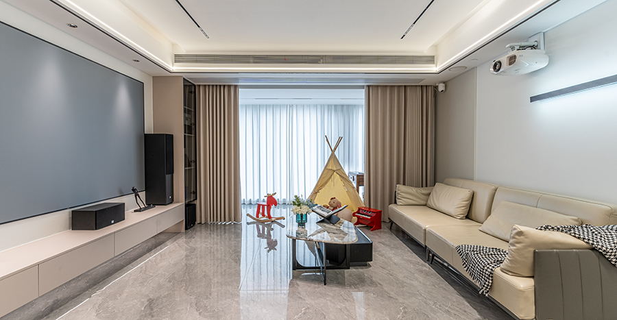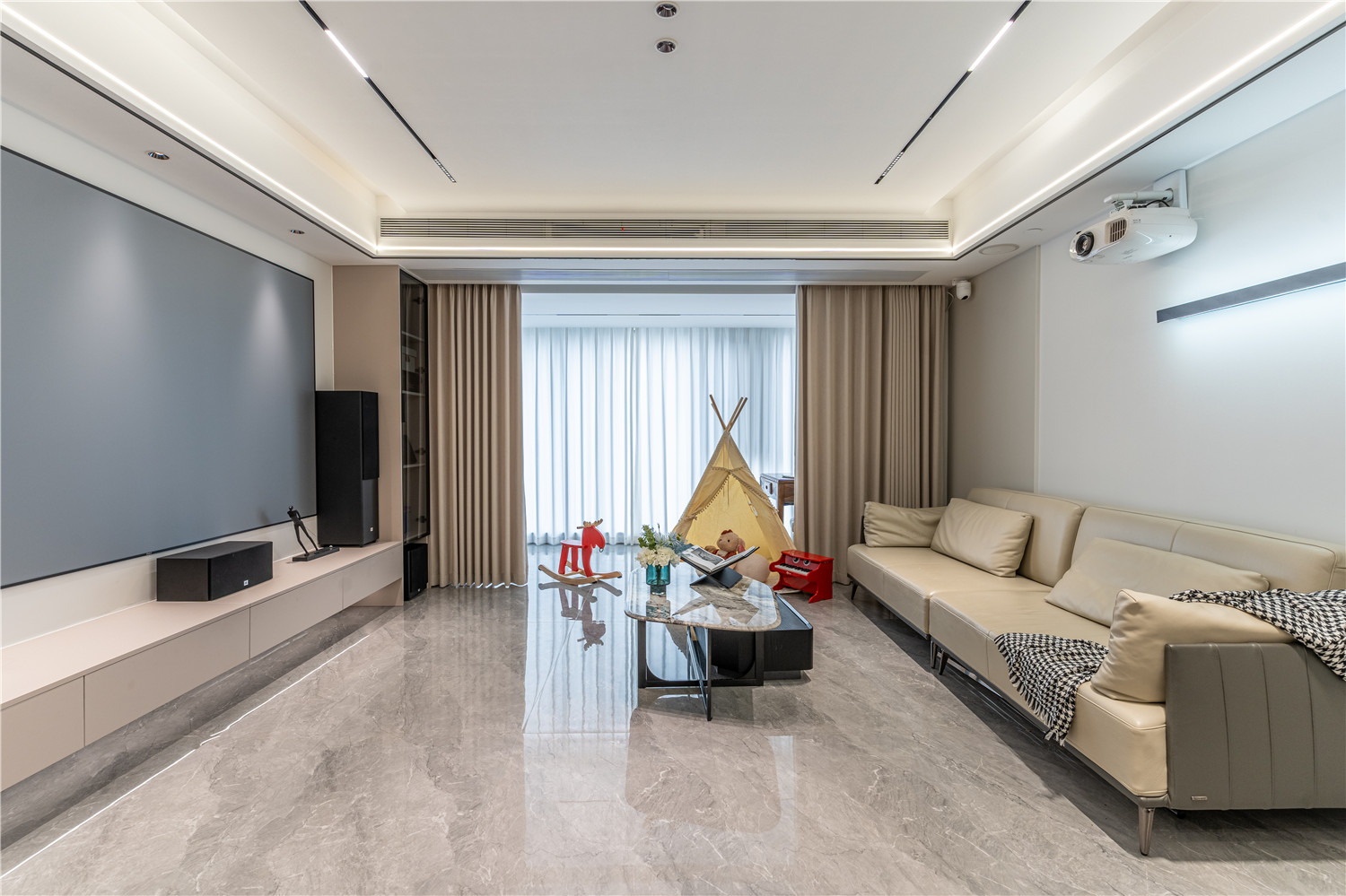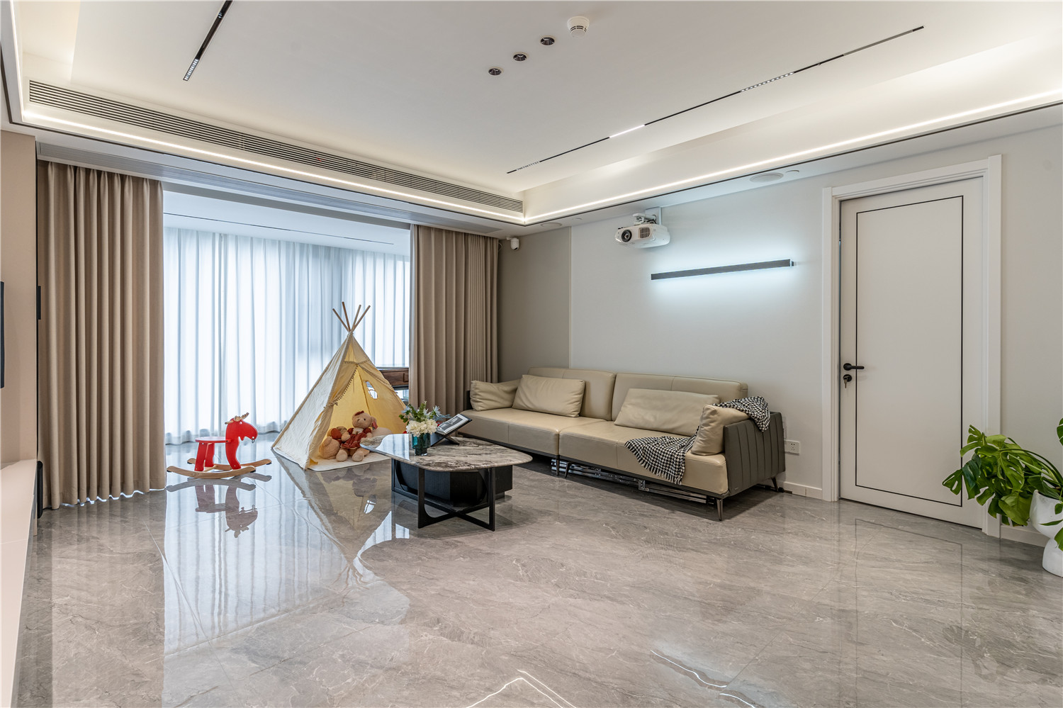 案例簡介:本案例的家庭為幸福的五口之家,除了業主夫妻二人外還有業主的父母與孩子,因此業主希望設計師能夠根據不同家庭成員的需求對空間進行合理的規劃與設計,以提升起居幸福感。而在與所有家庭成員進行一定交流溝通后,設計師折中選擇了認可度比較高的現代輕奢風作為空間主裝修基調,而色彩的選擇上則以簡潔素雅為主,這樣相對比較耐看且易于打掃。
