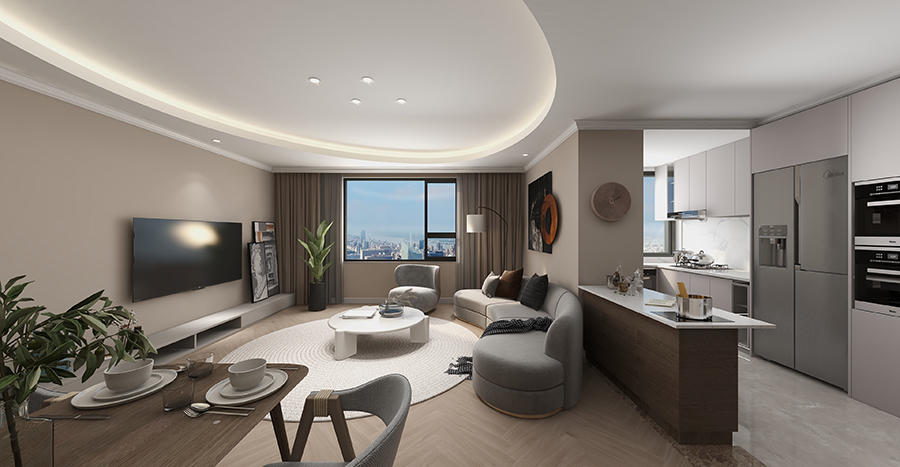 案例簡介:本案例的業主是一位獨居人士且近期沒有結婚的打算,因此房屋面積并不大,在與設計師交流時,業主明確的提出休憩空間一定要強調舒適,而整個住宅則要突出自己的個性與品位。設計師按照業主的想法將空間打造成半開放式設計,同時將約一半面積打造成為休憩空間,以滿足業主日常休憩、辦公需求。休憩空間以外的區域則打造成廚房與多功能空間,滿足做飯、會客等多種需求。